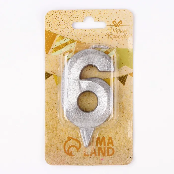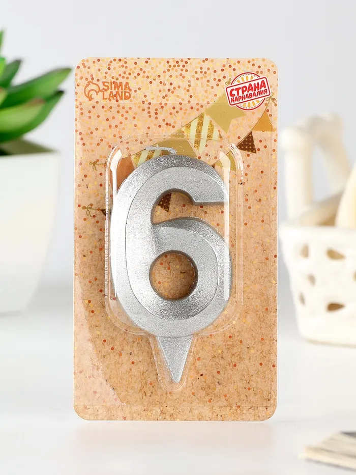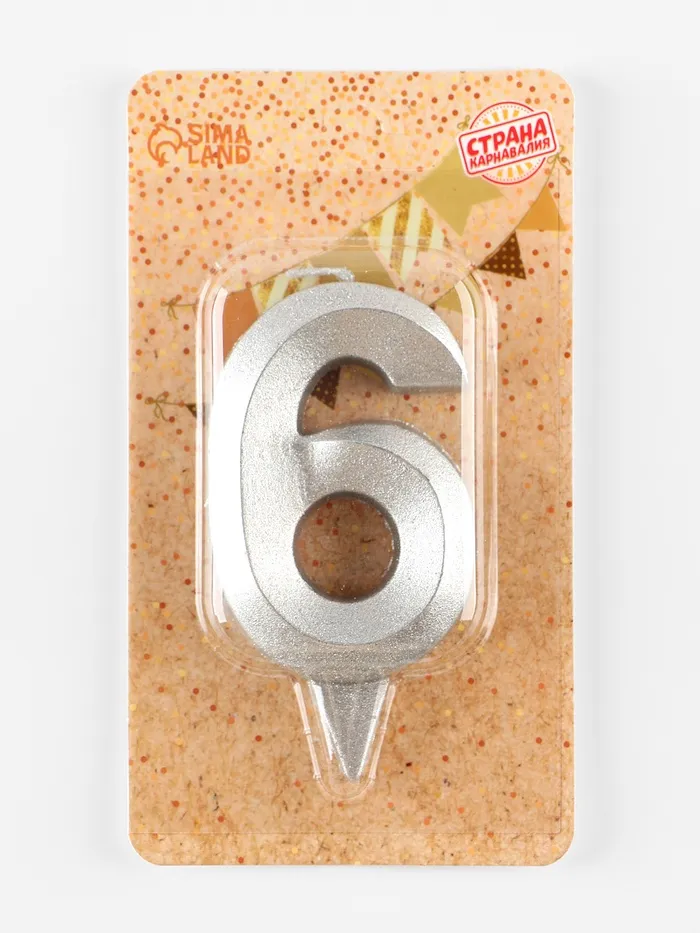 Свеча в торт «Цифра 6», серебряная, 6.5 см — Характеристики