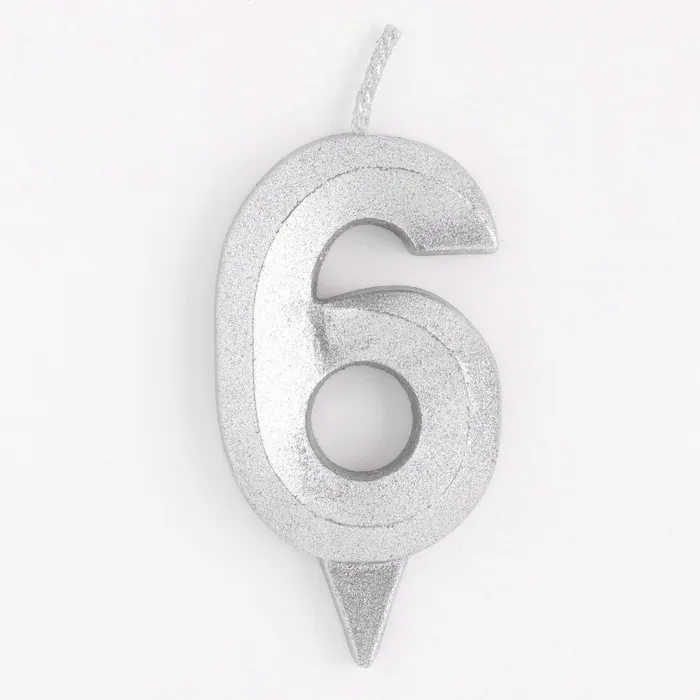 Свеча в торт «Цифра 6», серебряная, 6.5 см