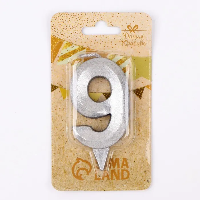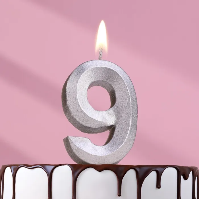 Свеча в торт «Цифра 9», серебряная, 6.5 см — Характеристики