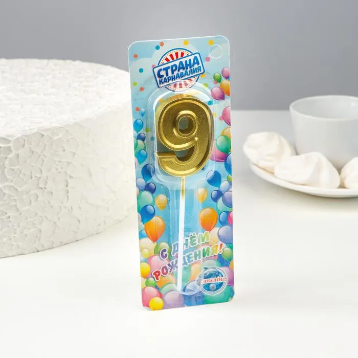 Свеча в торт цифра 9 золото, 5 см — Характеристики