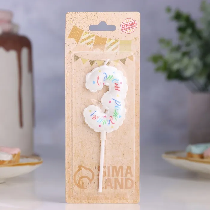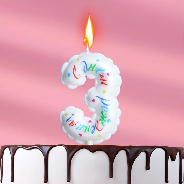 Свеча в торт «Воздушная», цифра 3, 5.5 см, белая — Характеристики