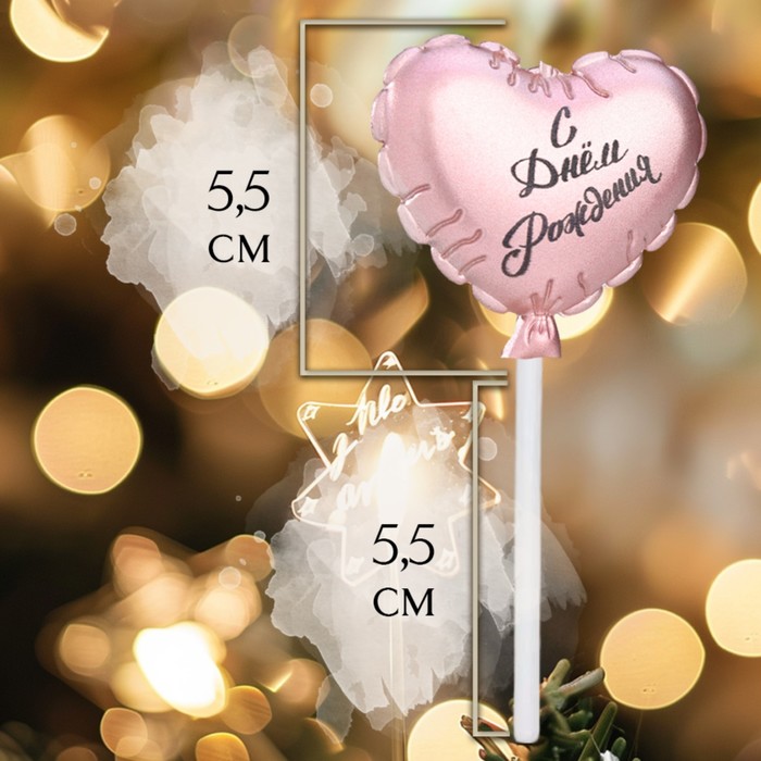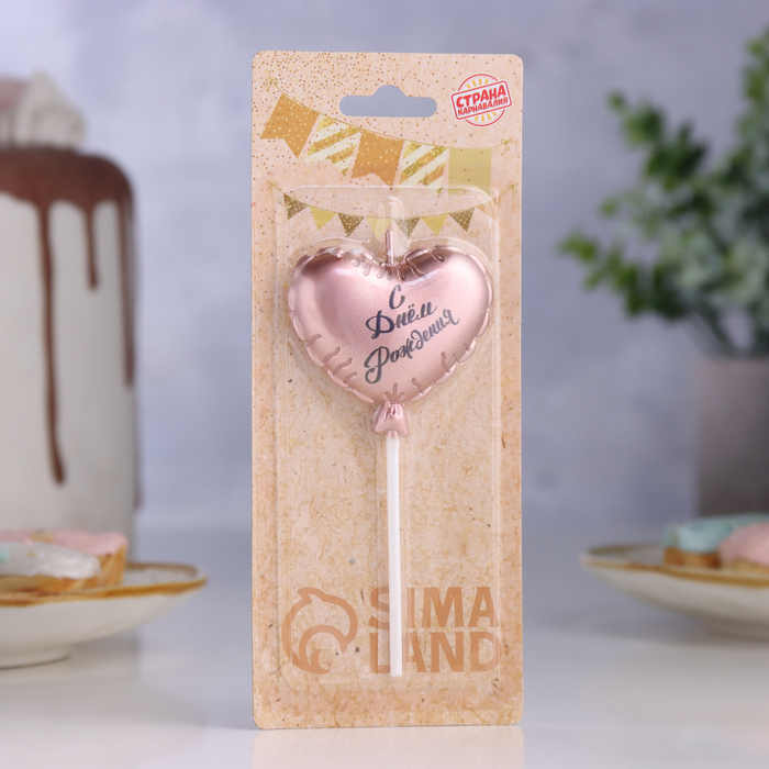 Свеча в торт «Воздушный шарик. Сердечко», 5.5 см розовое золото — Характеристики
