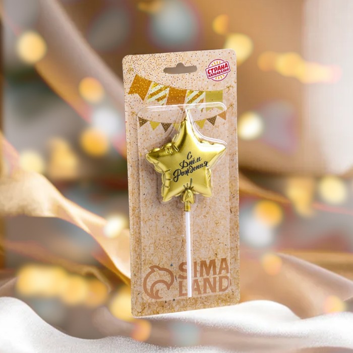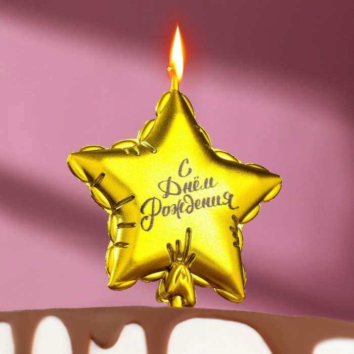 Свеча в торт «Воздушный шарик. Звезда», 7 см, золотая