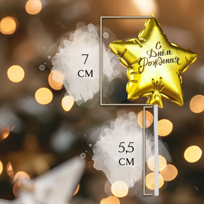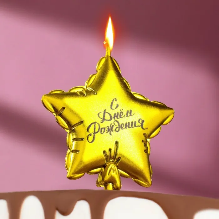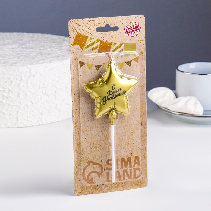 Свеча в торт «Воздушный шарик. Звезда», 7 см, золотая — Характеристики