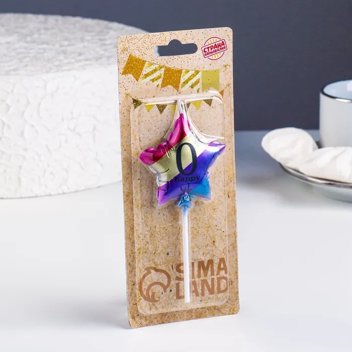 Свеча в торт «Воздушный шарик. Звезда», цифра 0, 5.5 см, разноцветная — Характеристики