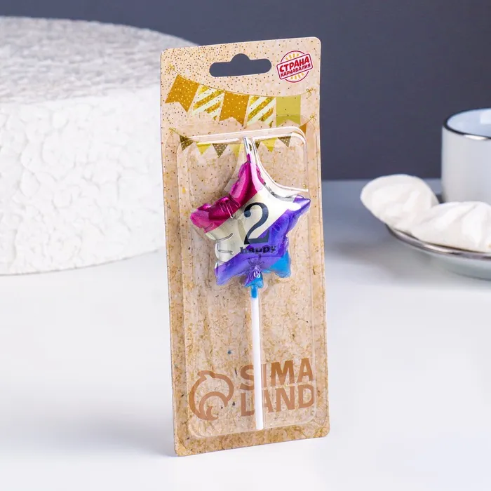 Свеча в торт «Воздушный шарик. Звезда», цифра 2, 5.5 см, разноцветная — Характеристики