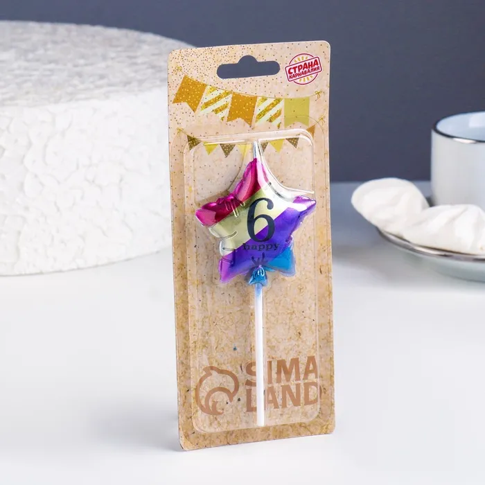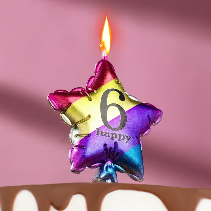 Свеча в торт «Воздушный шарик. Звезда», цифра 6, 5.5 см, разноцветная — Характеристики