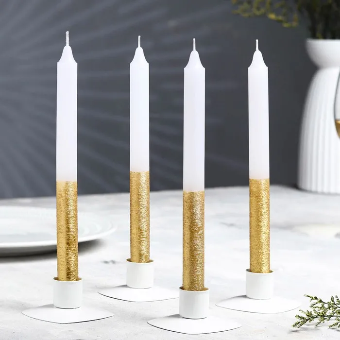 Набор свечей классических,1,9х 20 см, 4 шт, бело-золотой металлик