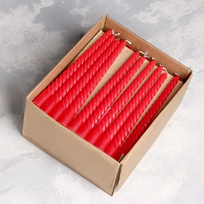 Набор свечей витых, 2,2х 25 см, лакированная 2 штуки, красный