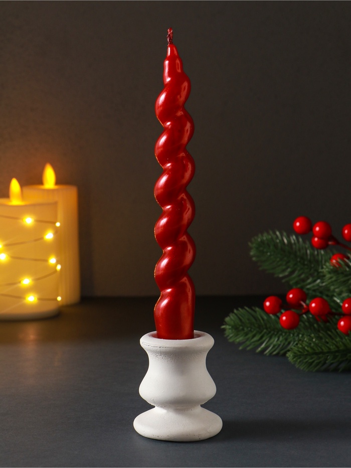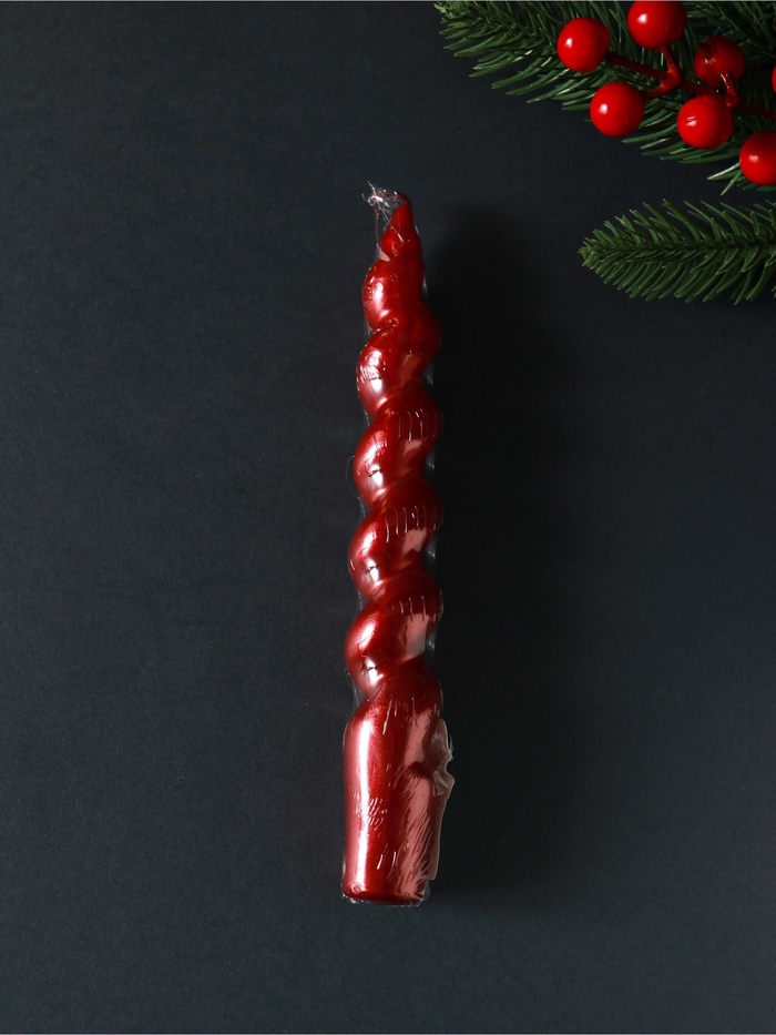 Эта красная витая свеча создаёт атмосферу уюта и торжества без лишних слов. Её спиралевидный силуэт оживает в танце пламени, превращая обычный вечер в небольшое событие. Свеча горит ровно и долго, подходит для любого интерьера — от каминной полки до обеденного стола.
