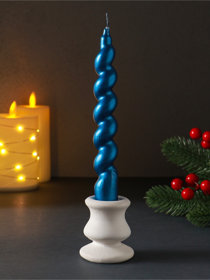 Синяя витая свеча — это элегантный акцент для вашего интерьера и источник спокойного живого огня. Её стройная форма и глубина лакового покрытия создают игру света, превращая обычный вечер в небольшой ритуал уюта.