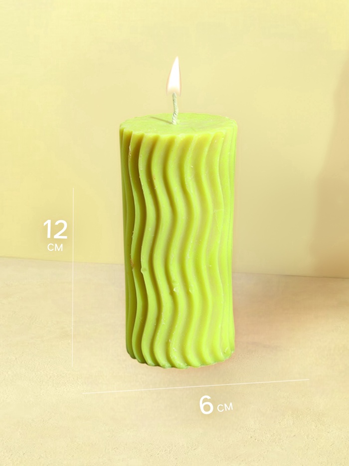 - Вертикальный рельеф «волны» по всей высоте свечи (12 см) создаёт сложную игру света и тени.
