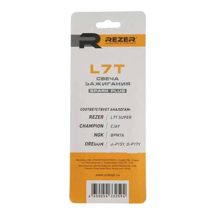 Свеча зажигания Rezer L7T, для бензопил Carver, Partner, Husqvarna, Stihl и др. — Характеристики