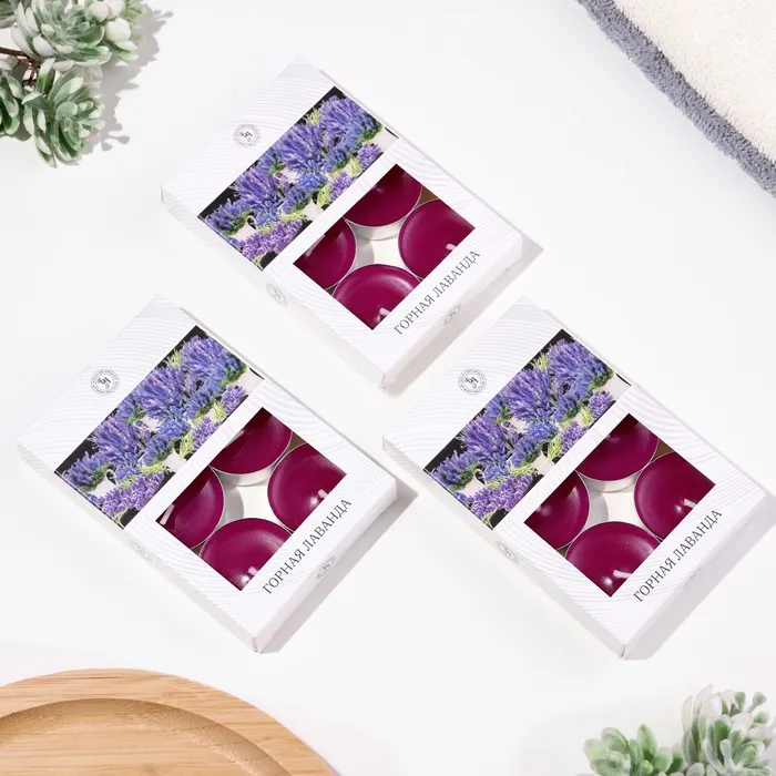 Свечи чайные ароматизированные "Горная лаванда" в подарочных коробках, 18 шт