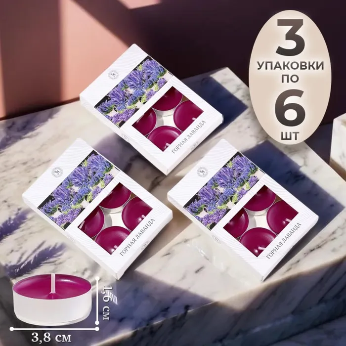 Свечи чайные ароматизированные "Горная лаванда" в подарочных коробках, 18 шт — Характеристики
