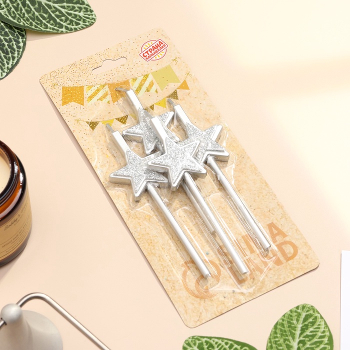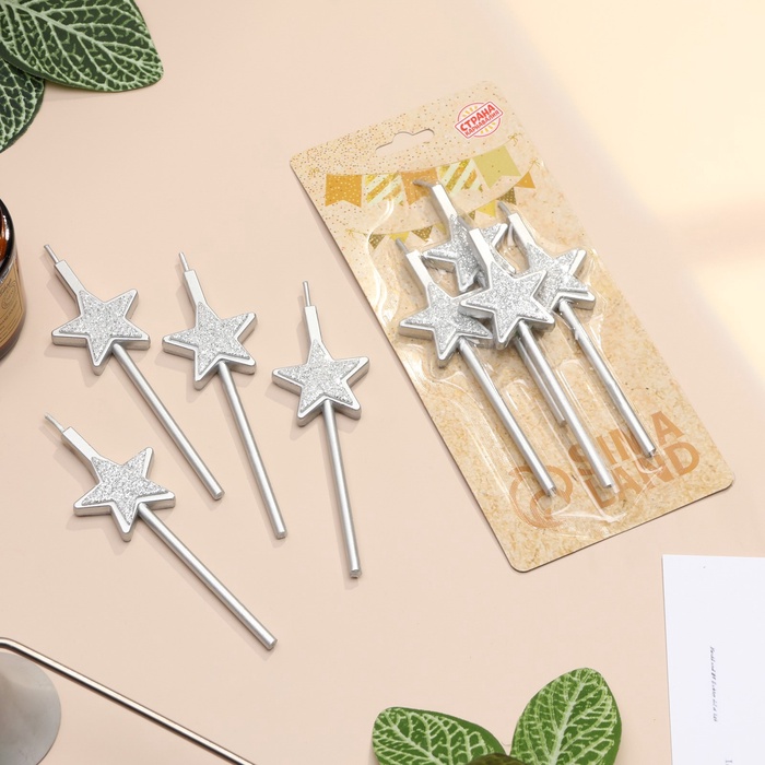 Свечи для торта 4 шт. «Блестящие звезды», серебряные — Характеристики