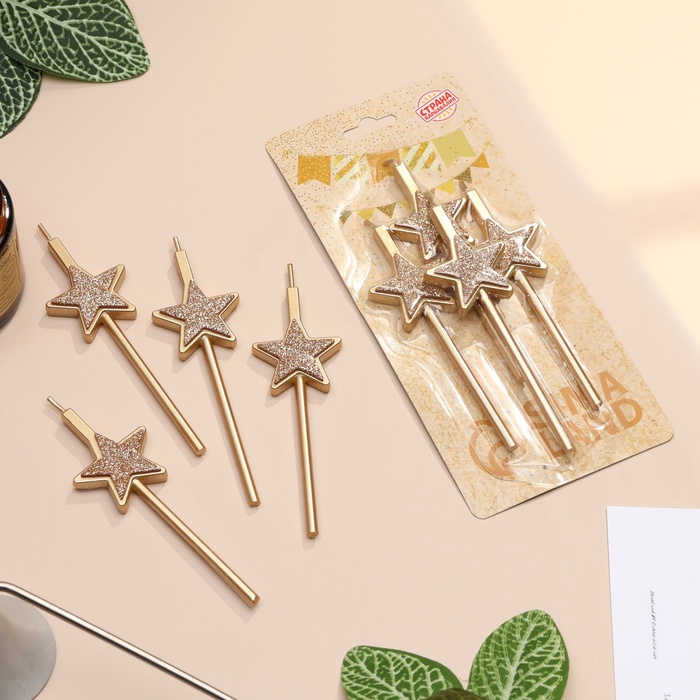 Свечи для торта 4 шт. «Блестящие звезды», шампань