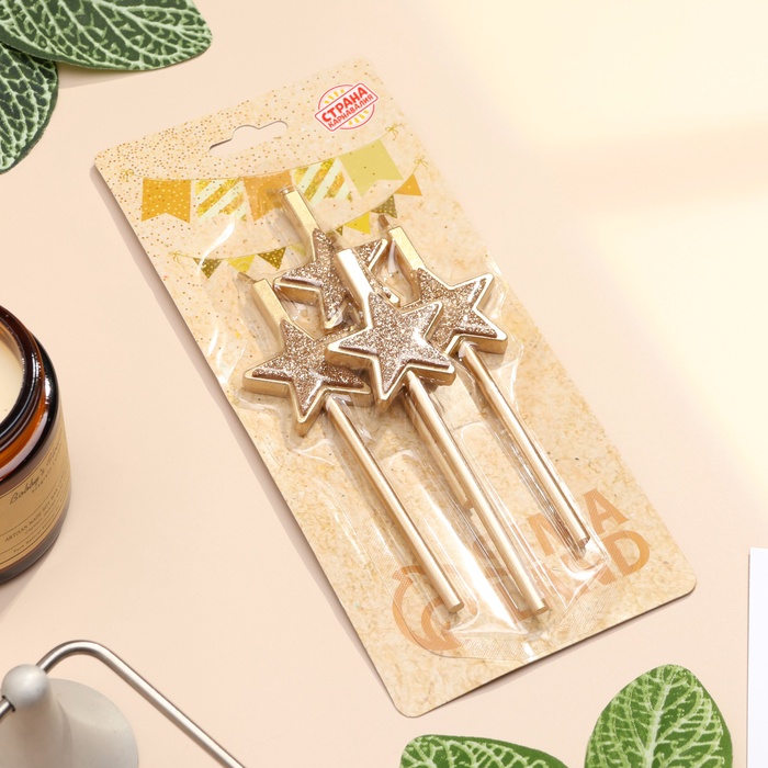 Свечи для торта 4 шт. «Блестящие звезды», шампань — Характеристики