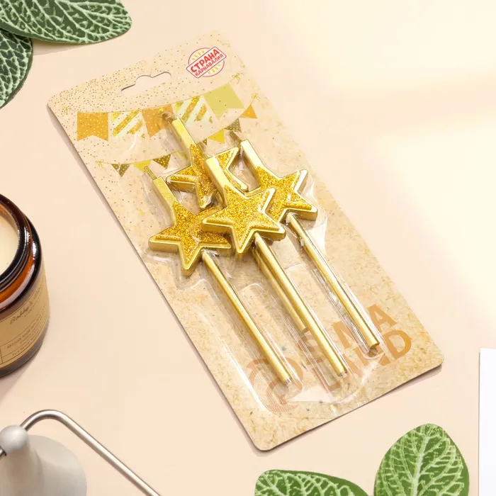 Свечи для торта 4 шт. «Блестящие звезды», золотые — Характеристики