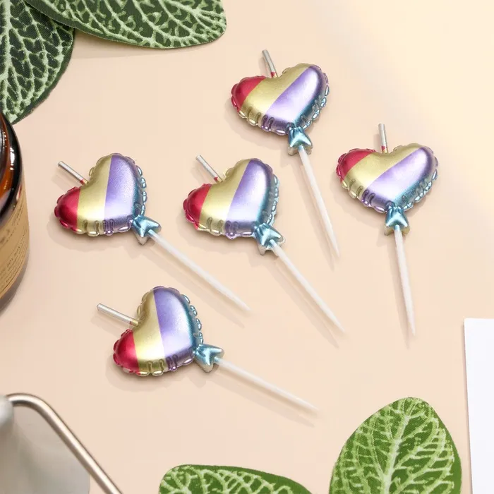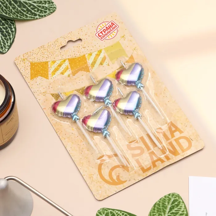 Свечи для торта 5 шт. «Воздушный шарик. Сердца», разноцветные — Характеристики