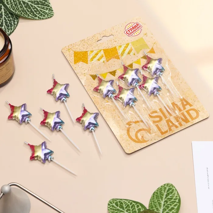 Свечи для торта 5 шт. «Воздушный шарик. Звезда», разноцветные — Характеристики