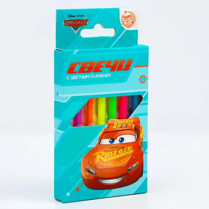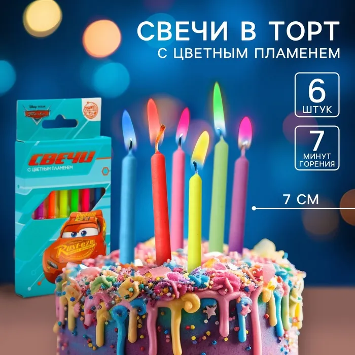 Свечи для торта, 6 шт., с цветным пламенем, Тачки — Характеристики