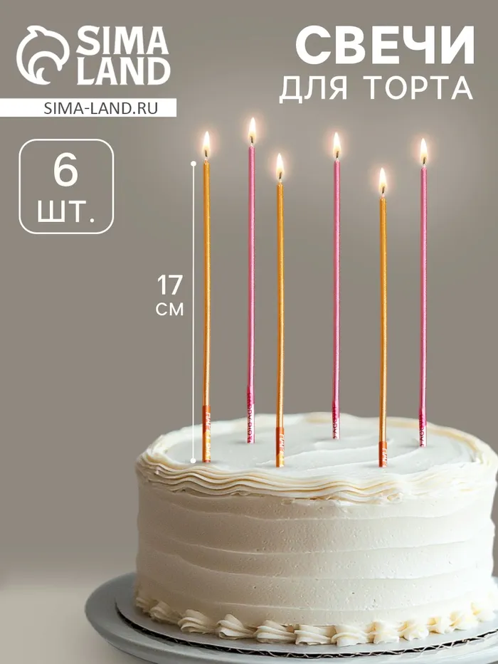 Свечи для торта, 6 штук «Лавандовый металлик», 15 см — Характеристики