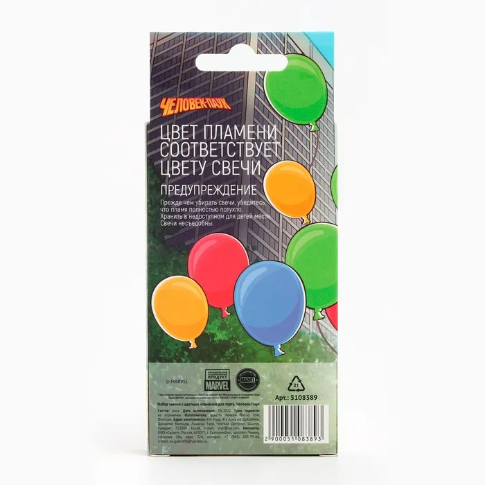 Свечи для торта 6 штук, с цветным пламенем, Человек-Паук — Характеристики