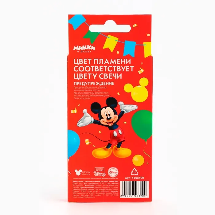 Свечи для торта 6 штук, с цветным пламенем, Микки Маус — Характеристики