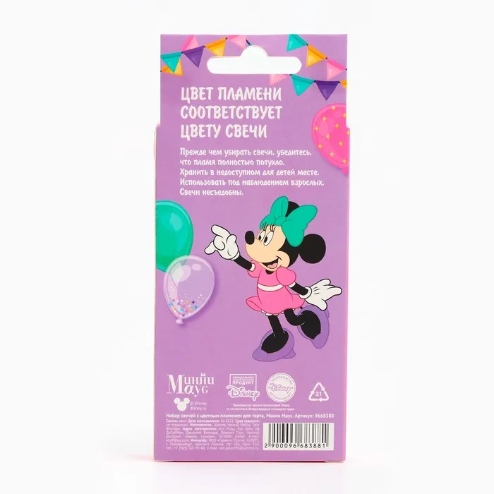 Свечи для торта 6 штук, с цветным пламенем, Минни и Единорог — Характеристики