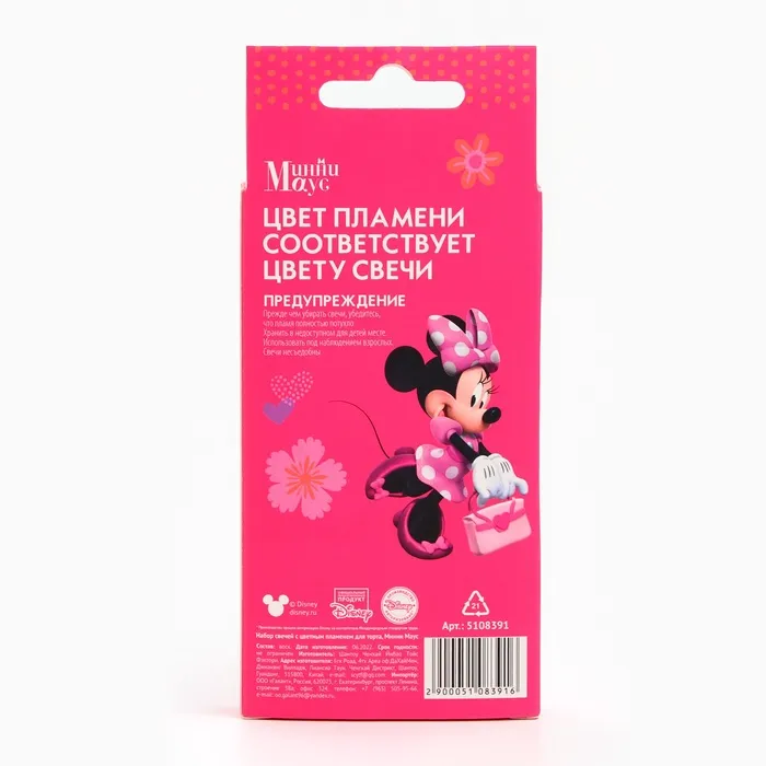 Свечи для торта 6 штук, с цветным пламенем, Минни Маус — Характеристики