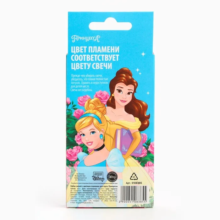 Свечи для торта, 6 штук, с цветным пламенем, Принцессы — Характеристики