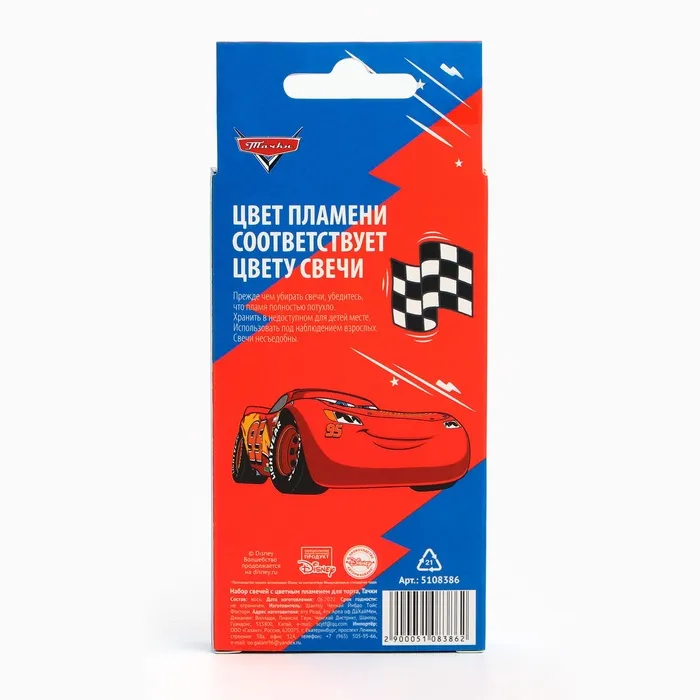 Свечи для торта 6 штук, с цветным пламенем, Тачки — Характеристики
