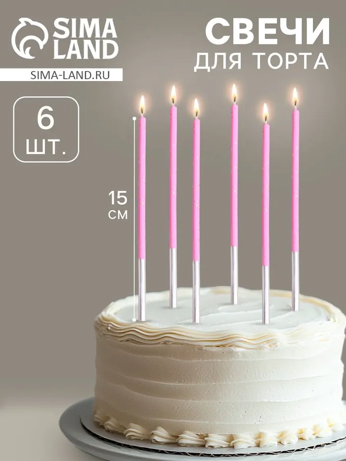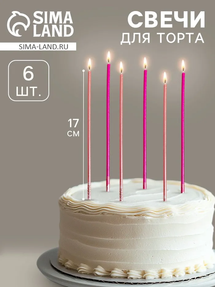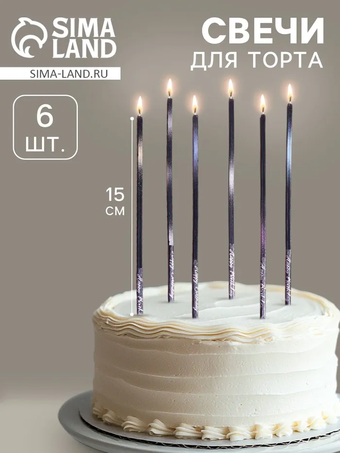 Свечи для торта, 6 штук «Сияние», чёрный, 17 см — Характеристики