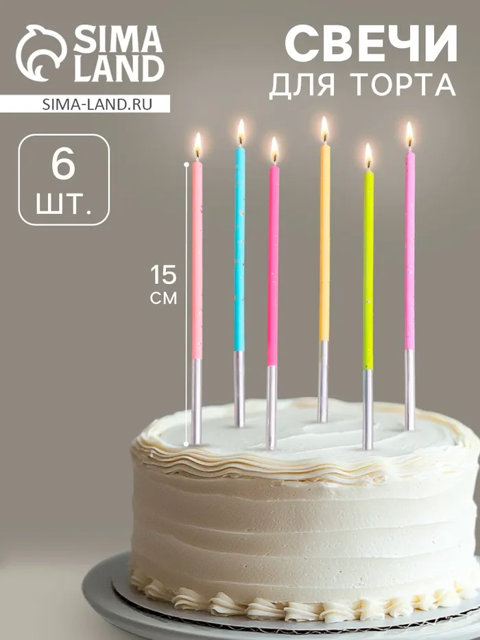 Свечи для торта, 6 штук «Сияние», жёлтый с чёрным, 17 см — Характеристики
