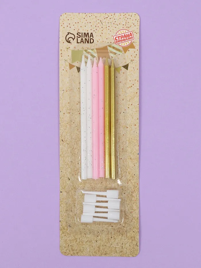 Свечи для торта «Блестящая вечеринка», 6 шт, белый, розовый, золотой — Характеристики