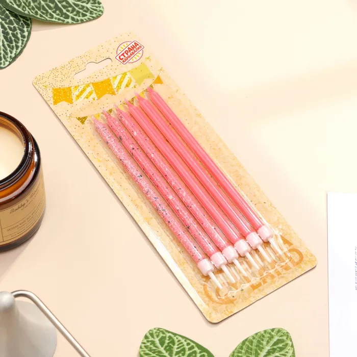 Свечи для торта «Блестящая вечеринка», 6 шт., розовые, высокие — Характеристики