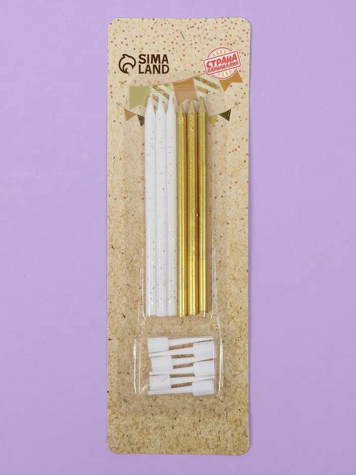 Свечи для торта «Блестящая вечеринка», 6 шт, золотой и белый цвет — Характеристики