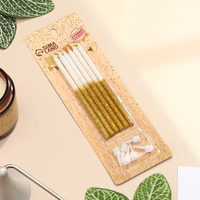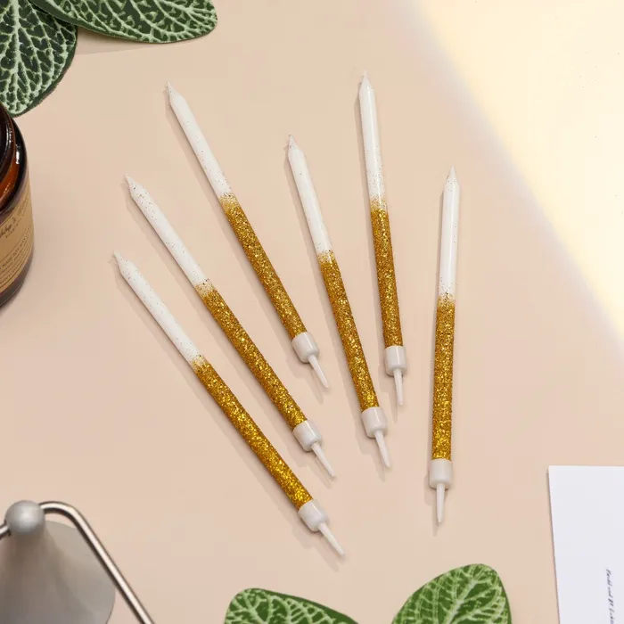 Свечи для торта «Блестящее сияние», 6 шт., белые с золотым — Характеристики