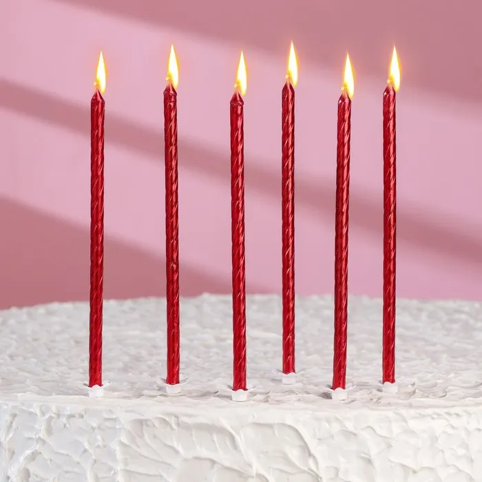 Свечи для торта «Классические» с подставкой, 13 см, 6 шт., рубиновые — Характеристики
