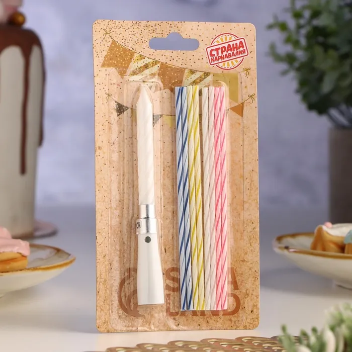 Свечи для торта, коктейльные 8 шт., 1 музыкальная
