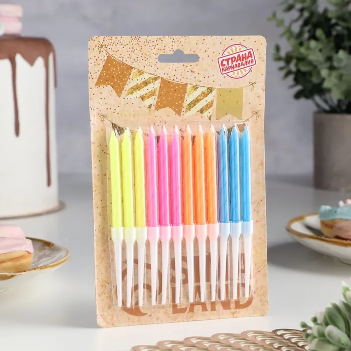 Свечи для торта «Неон», 10 см, 12 шт., разноцветные — Характеристики