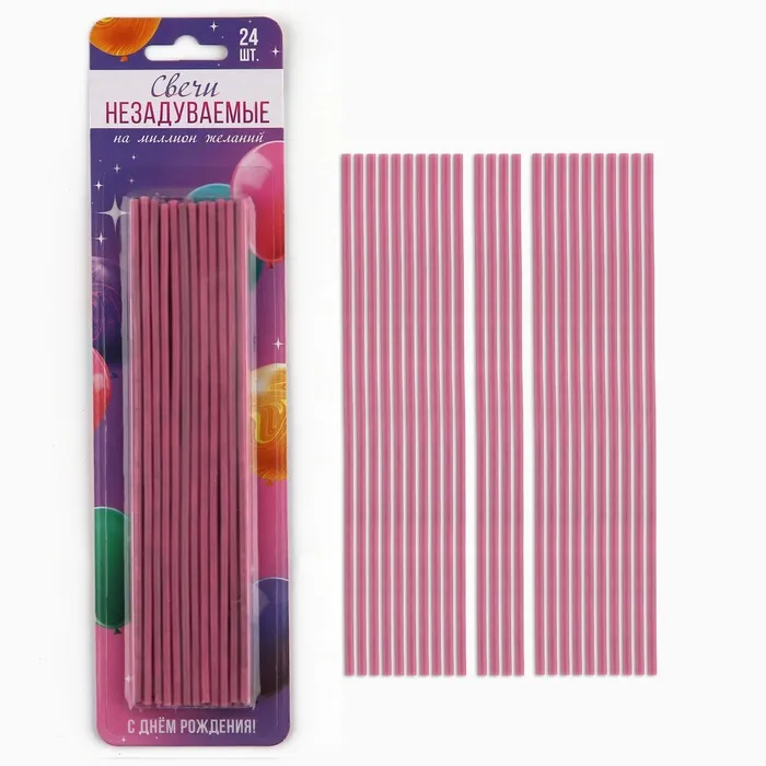 Свечи для торта незадуваемые, розовые, 24 шт., 16,8 х 0,3 см — Характеристики