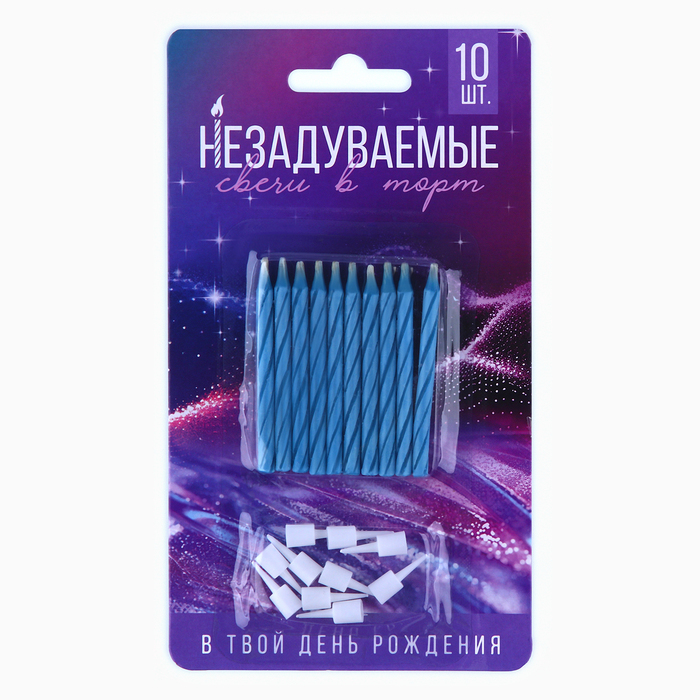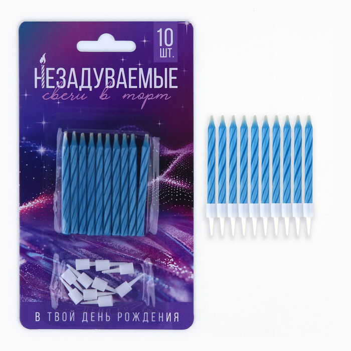 Свечи для торта незадуваемые «В твой день рождения», голубые, 10 шт., 6 х 0,4 см — Характеристики