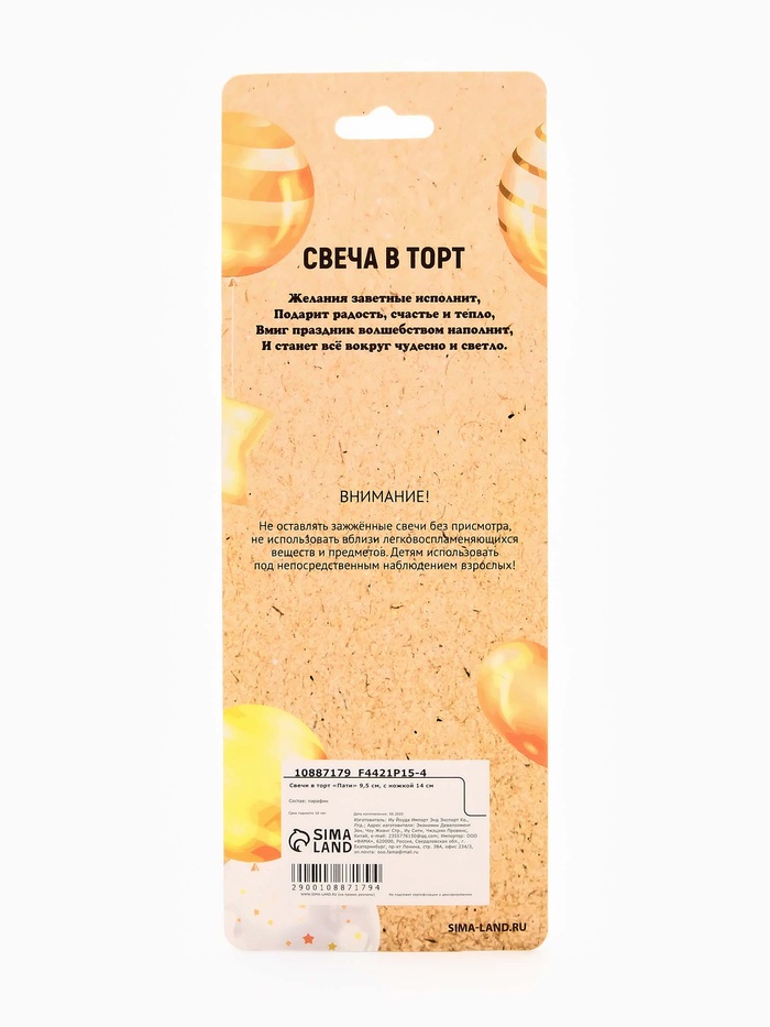 Свечи для торта «Пати» 9.5 см, с ножкой 14 см — Характеристики