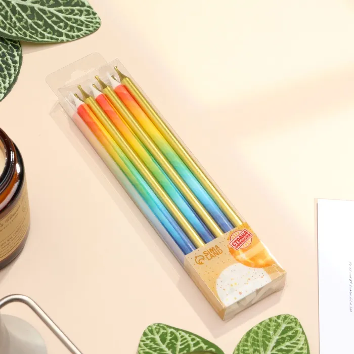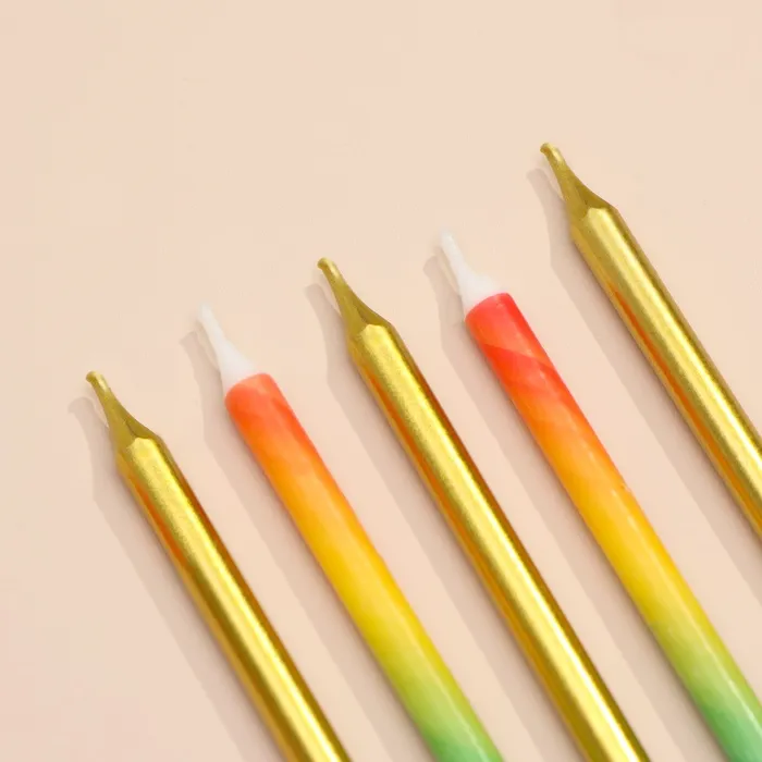 Свечи для торта «Радуга», 12 шт., золото и разноцветный — Характеристики