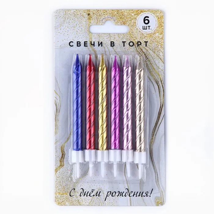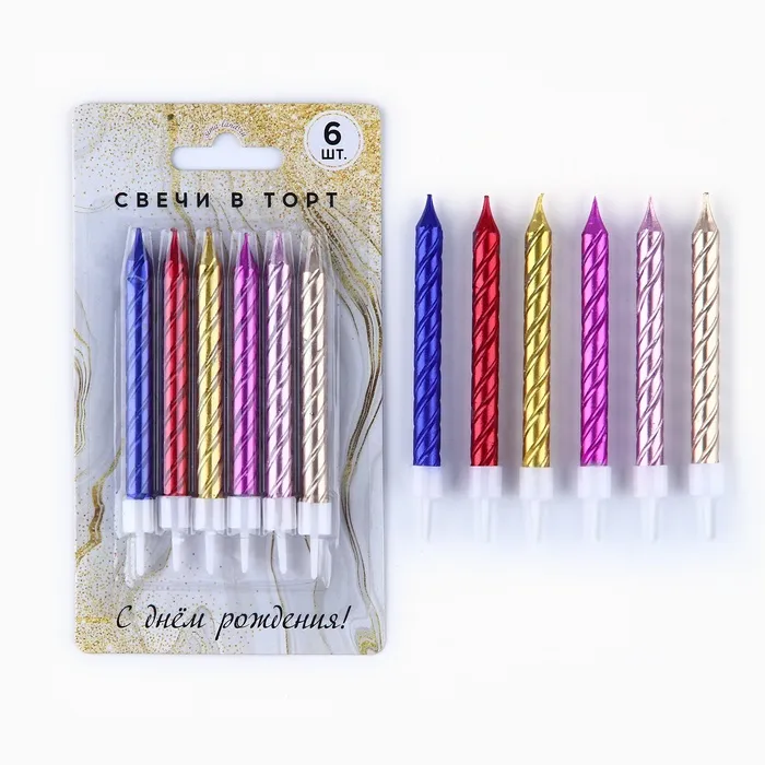 Свечи для торта, разноцветные, 6 шт., 9,5 х 0,9 см — Характеристики