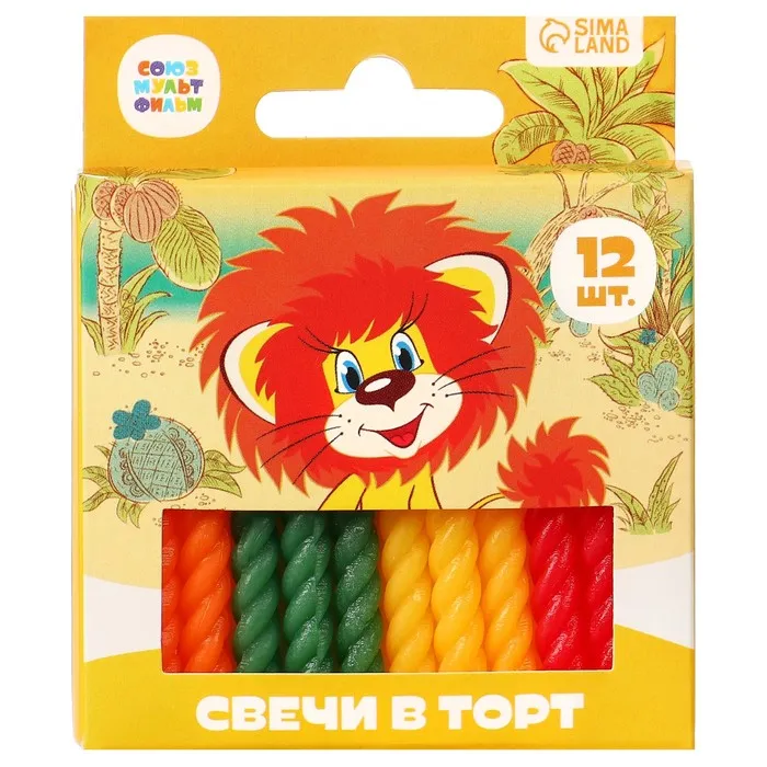 Свечи для торта «С Днем Рождения», 12 штук, Львёнок и Черепаха — Характеристики