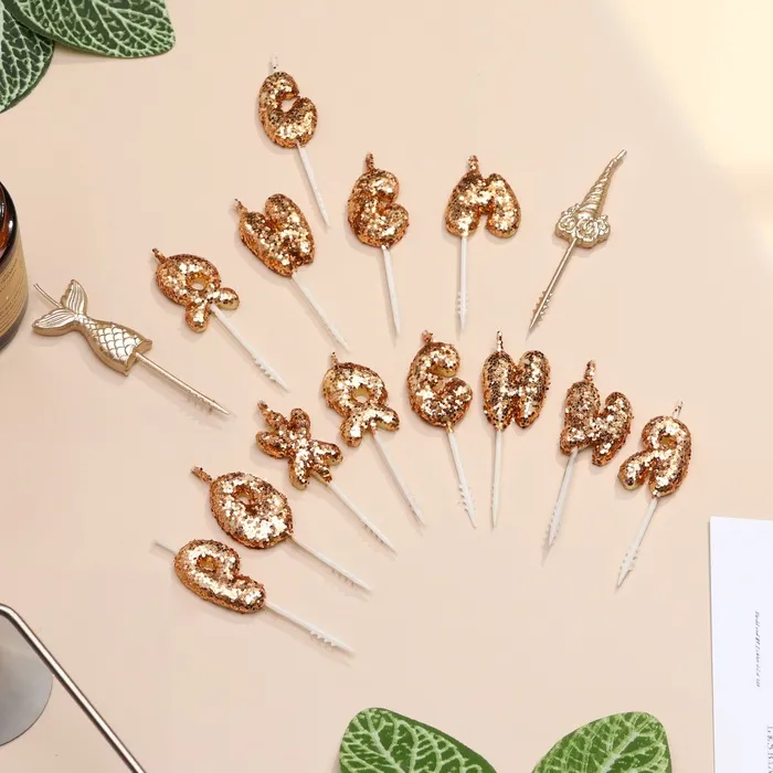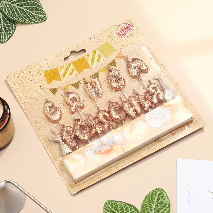 Свечи для торта «С днем рождения!», блестящие, золотые — Характеристики