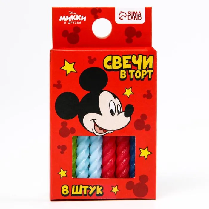 Свечи для торта «С Днем Рождения», набор 8 штук, Микки Маус — Характеристики